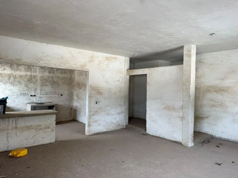 Planta baja: Sala, comedor cocina, dos recámaras, un baño, espacio amplio para estacionamiento para cuatro autos.