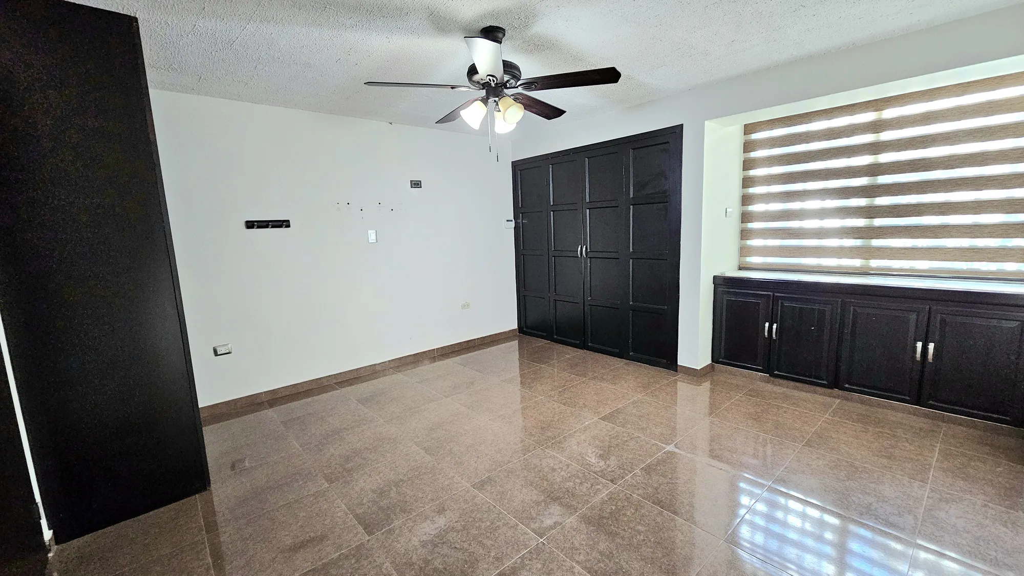 persianas, abanico de techo y minisplit de 1 ton; baño completo con lavamanos