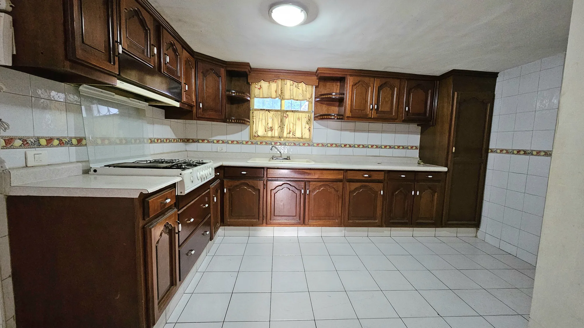 Lavandería techada, cuarto de servicio, amplio patio con cemento pulido.