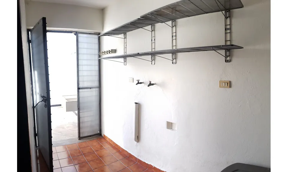 desayunadora con 2 bancos, amplia alacena y persiana; cuarto de lavandería con