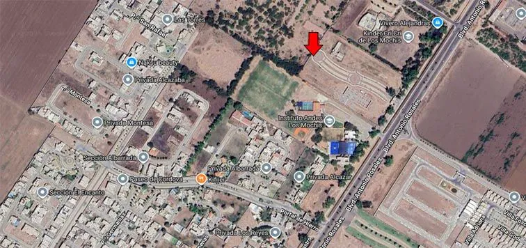 En Venta excelente y muy amplio Terreno Residencial sobre Blvd. Antonio Rosales No. 3500 Sur, Carretera al Ejido 9 de Diciembre, Los Mochis, Sin., el terreno cuenta con las siguientes medidas: