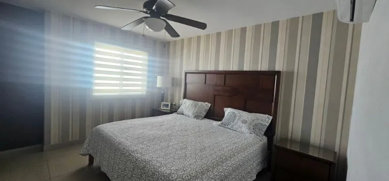 Casa en renta ubicada en Callejón Municipal, entre Allende y Degollado, en Los Mochis, Sinaloa, ideal para familias. Cuenta con 2 niveles construidos, sala, comedor, 3 recámaras con camas, clóset, 2 baños completos y 1 medio baño.. Disfruta de una cocina integral equipada con refrigerador, estufa, área de lavado con secadora, lavadero y patio. Además, cuenta con 3 minispli, está amueblada y tiene línea blanca. Incluye 2 lugares de estacionamiento. se encuentra en buen estado de conservación, con disponibilidad inmediata. Estancia mínima de 365 días. Ubicada cerca de escuelas, plazas, diversos comercios, facilita el acceso a servicios educativos.