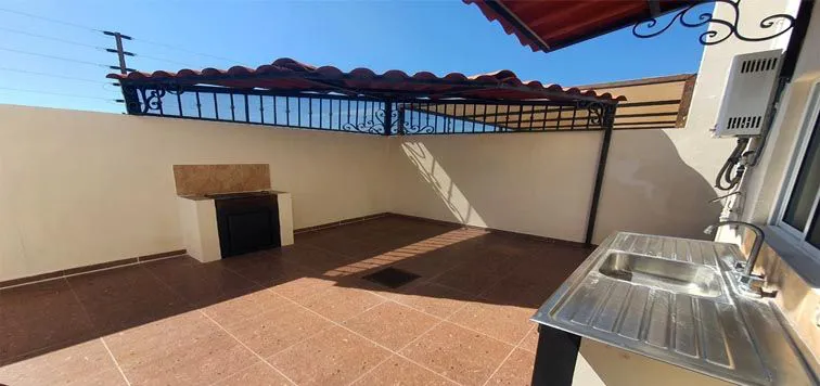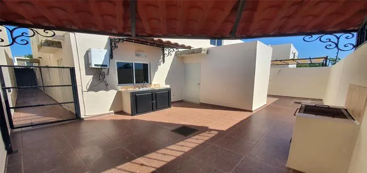 PLANTA BAJA: Sala, Comedor, Cocina Integral, Recámara con Baño completo (1), Medio Baño, Patio-Terraza (equipada con Asador, Lavaplatos, Baño completo, estructura en techo), Área de Lavandería, Cochera (2) Autos, etc.